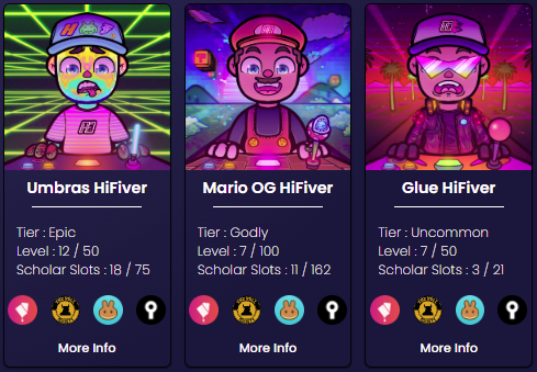 Each tier of NFT’s unlocks scholar slots by being leveled up